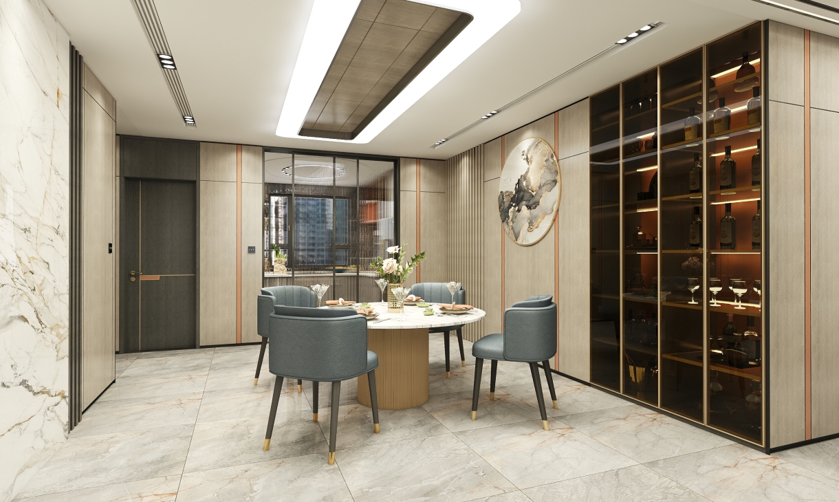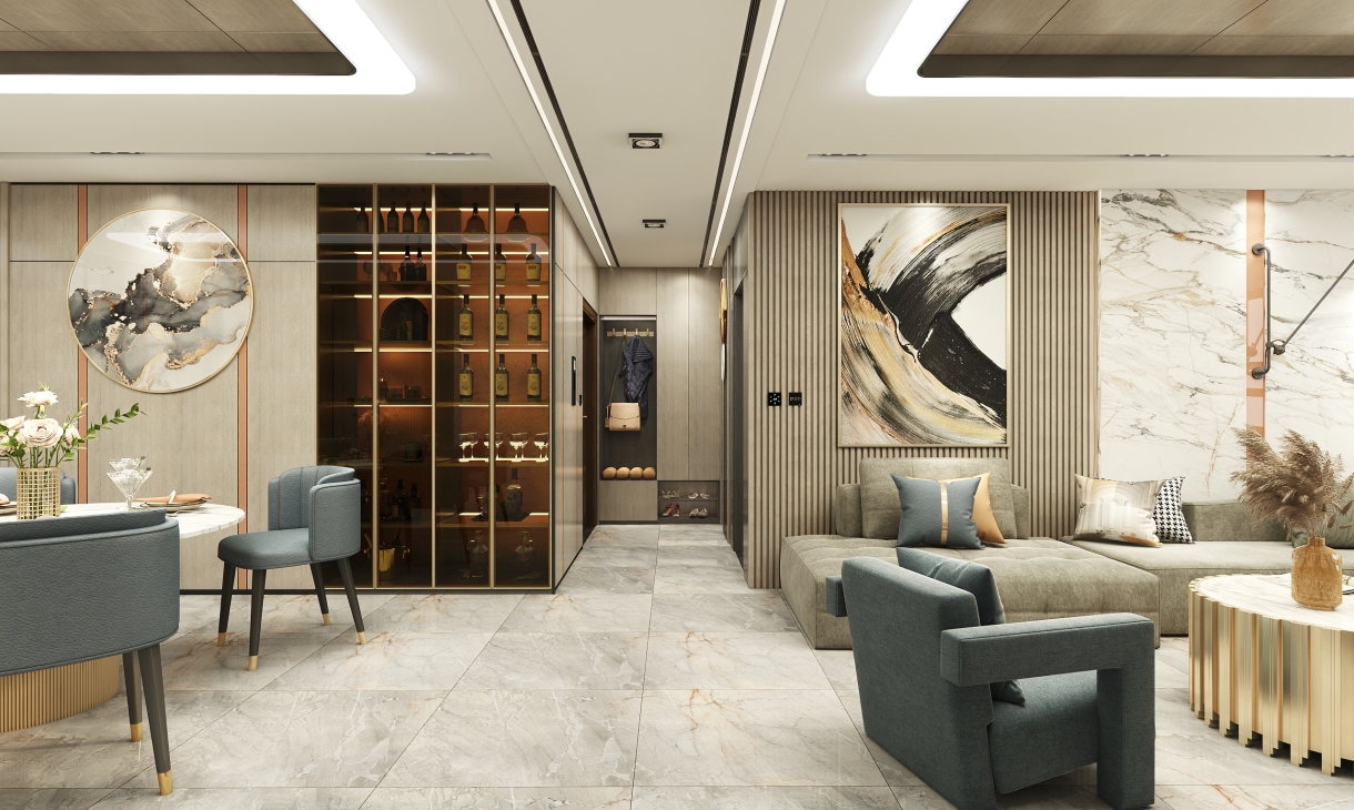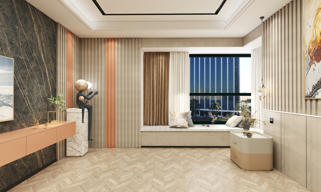 以輕奢為主要設(shè)計思想,搭配時尚界的寵色調(diào)愛馬仕橙點綴整個空間,奢華而不繁雜,穩(wěn)重而不老氣,成功精英的完美選擇