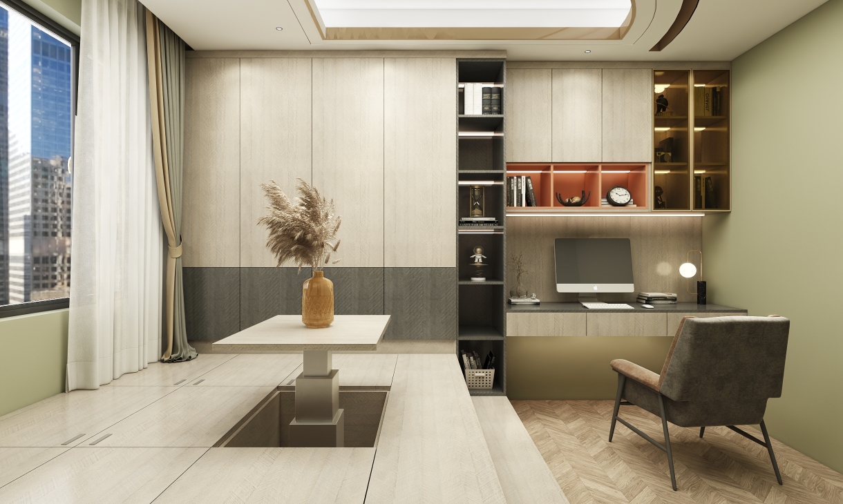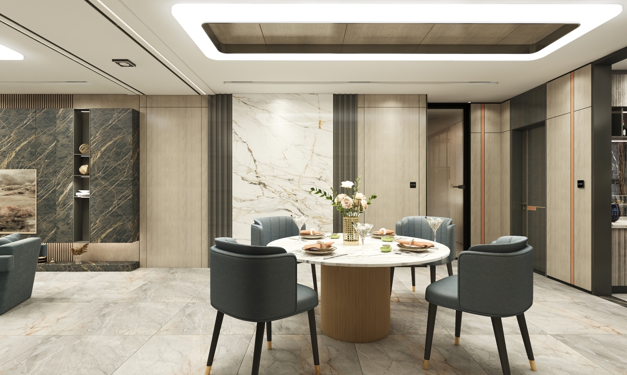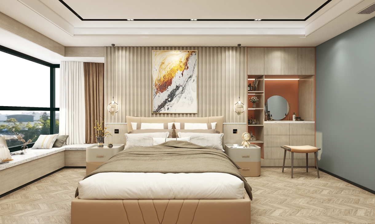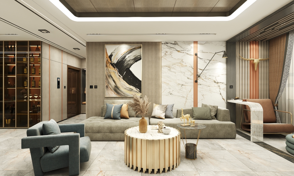 以輕奢為主要設(shè)計思想,搭配時尚界的寵色調(diào)愛馬仕橙點綴整個空間,奢華而不繁雜,穩(wěn)重而不老氣,成功精英的完美選擇