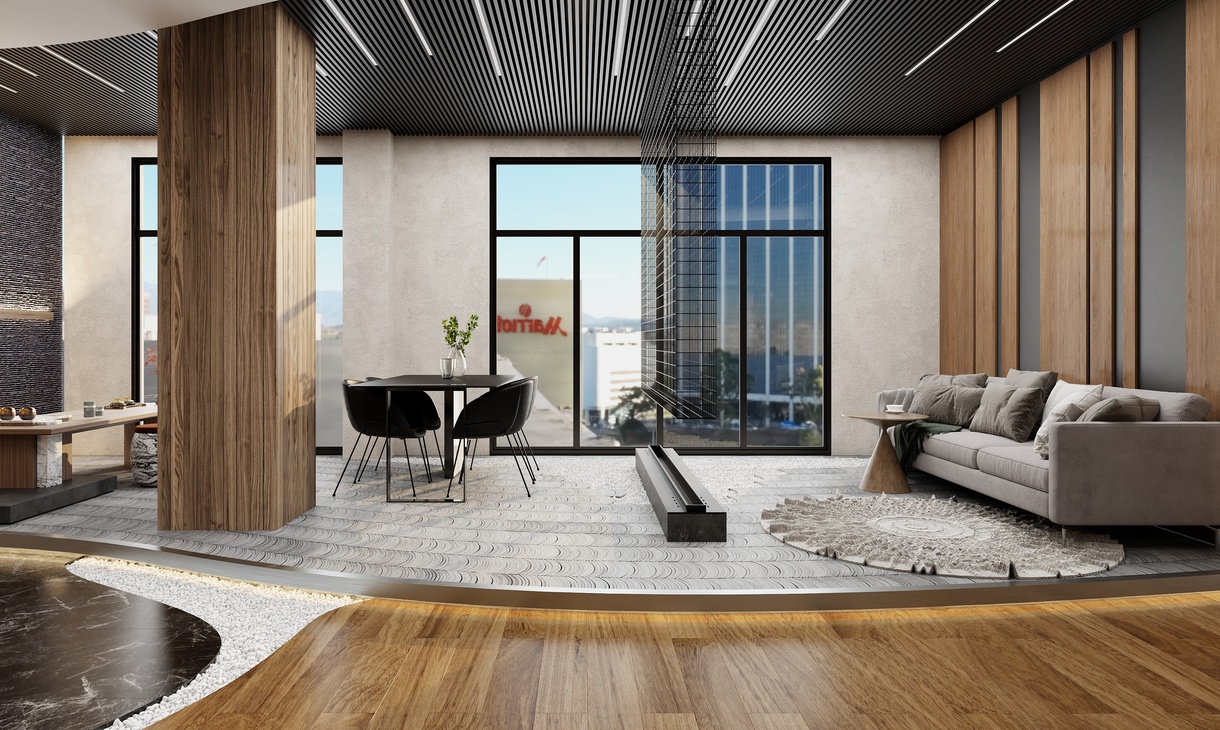 每個空間至少2張效果圖+1張全案全景圖展示,方案描述完整,所有空間需命名。