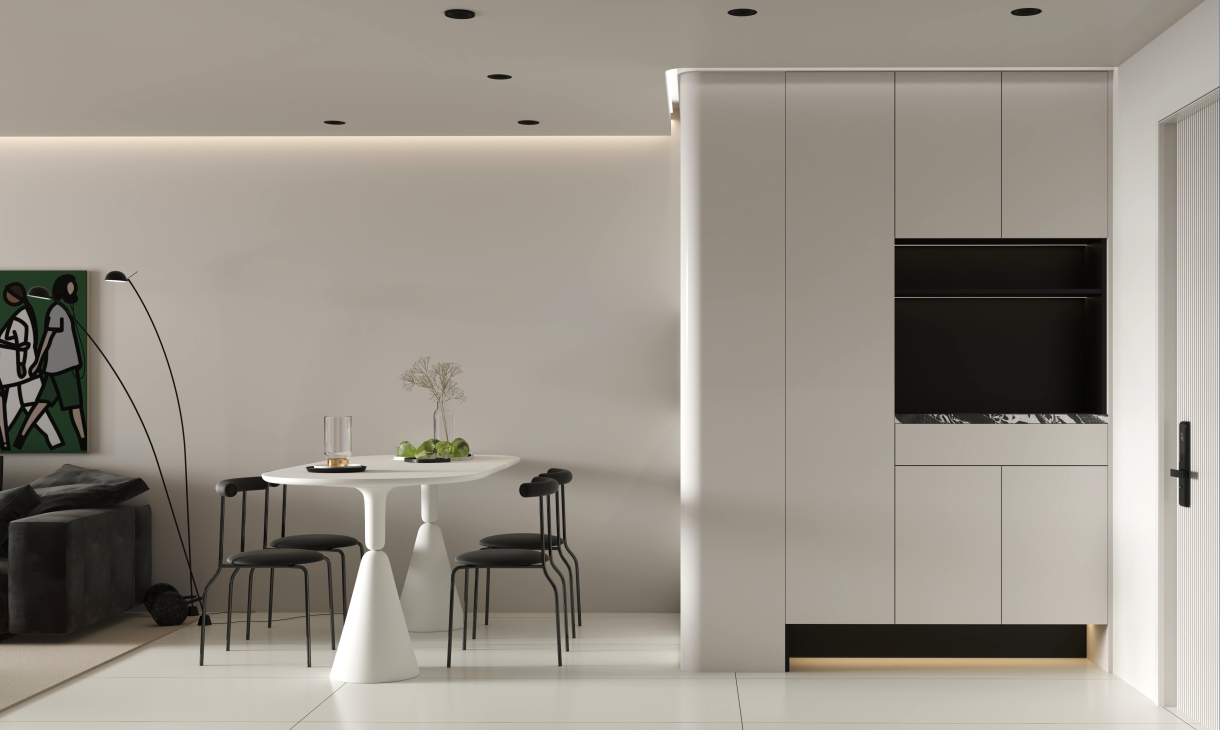 極致的白&小面積黑色點(diǎn)綴 客戶是小一對(duì)小年輕,要求空間顯得通透,但不要顯得太“蒼白”。 在黑色里溫柔地愛(ài)彩色,在彩色里朝圣黑白。 效果圖合作:+v18844971014