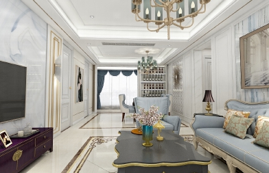 簡約不復(fù)雜的歐式裝飾 高端大氣的家具地面拼花造型讓這個(gè)空間提升了一個(gè)檔次