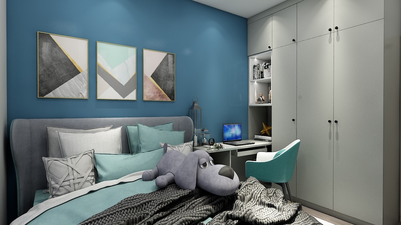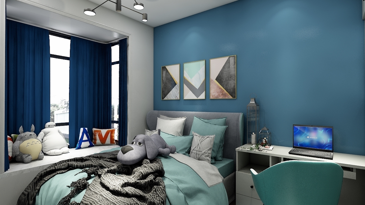 男孩房在色彩和空間搭配上最好以明亮、輕松、愉悅為選擇方向,不妨多點對比色。