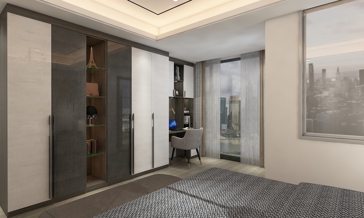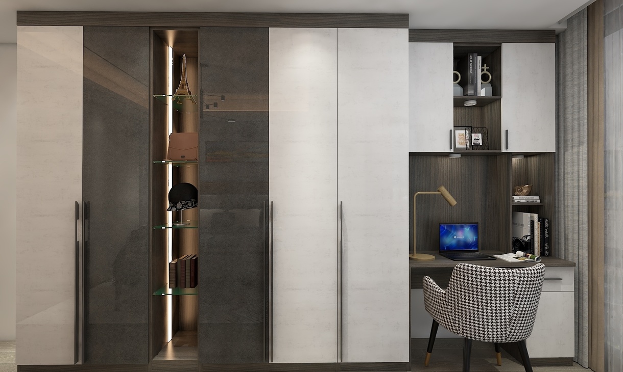 1、業(yè)主需求比較有檔次,足夠的儲物空間,還有學習空間結合; 2、效果要簡約大氣 3、顏色深淺撞色