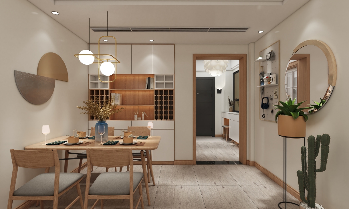 北歐風(fēng)格,整體采用了原木色系的搭配??瓷先ナ娣?,簡單中帶著一些時尚。融匯了金屬的色系,加入一點輕奢的元素。自然,時尚,高貴。一氣呵成。