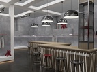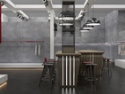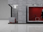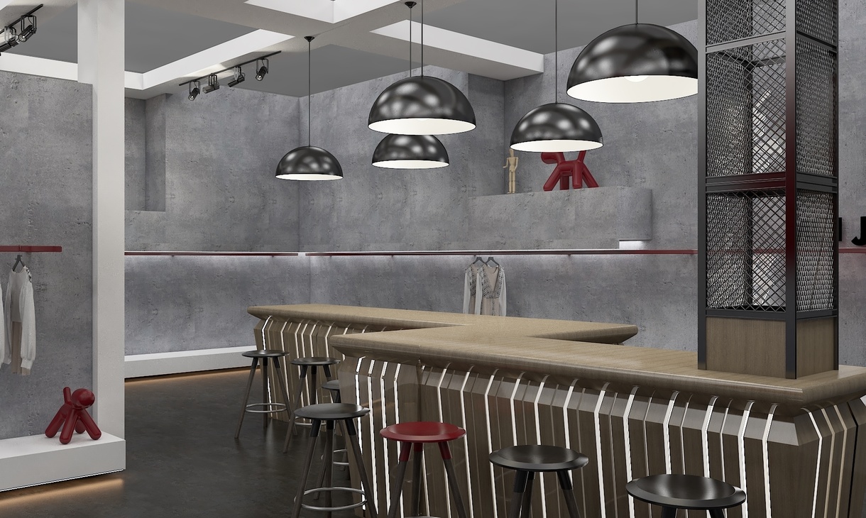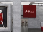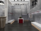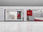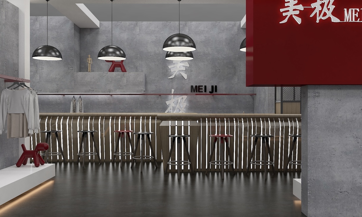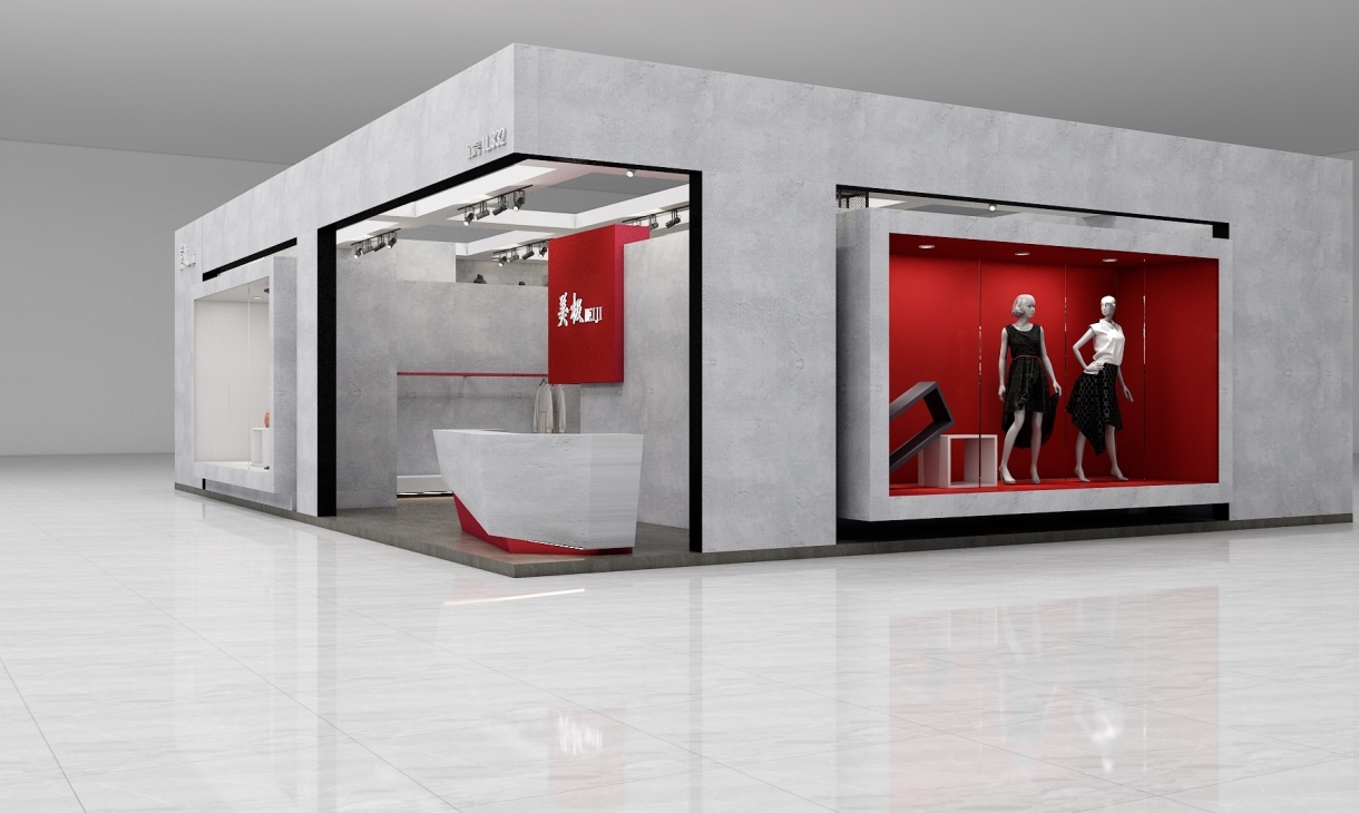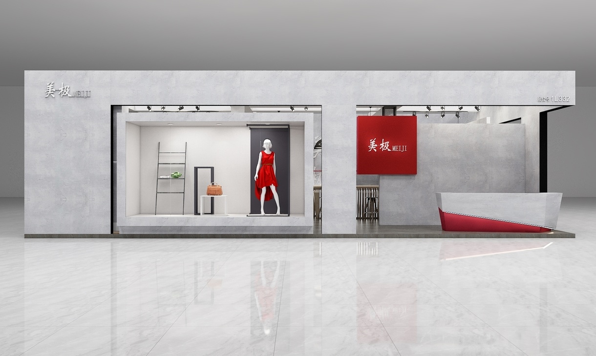 水泥灰搭配緋紅,效果還蠻高級(jí)的服裝展廳