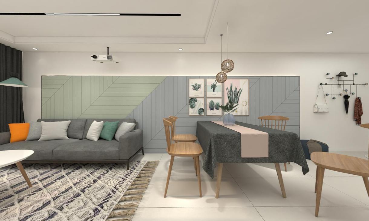 每個空間至少2張效果圖+1張全案全景圖展示,方案描述完整,所有空間需命名。