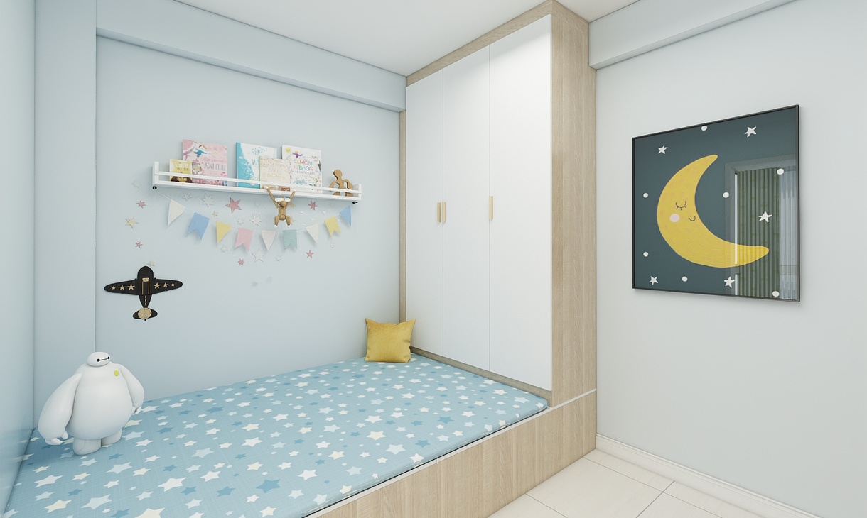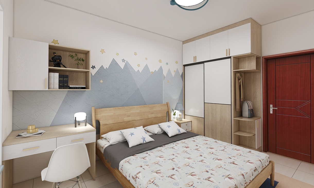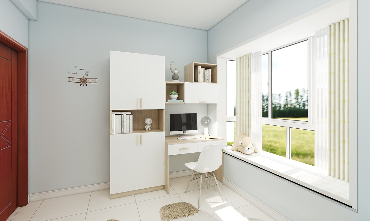 小男孩只有十歲,正是需要獨(dú)立空間的時候,需要自己的儲物間也需要屬于自己的學(xué)習(xí)基地,背景設(shè)計(jì)卡通,帶童趣