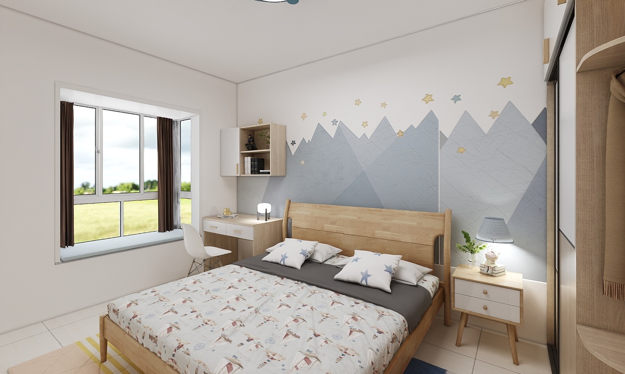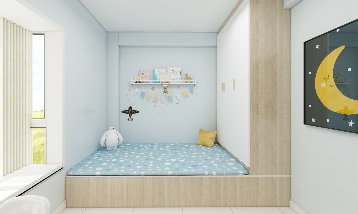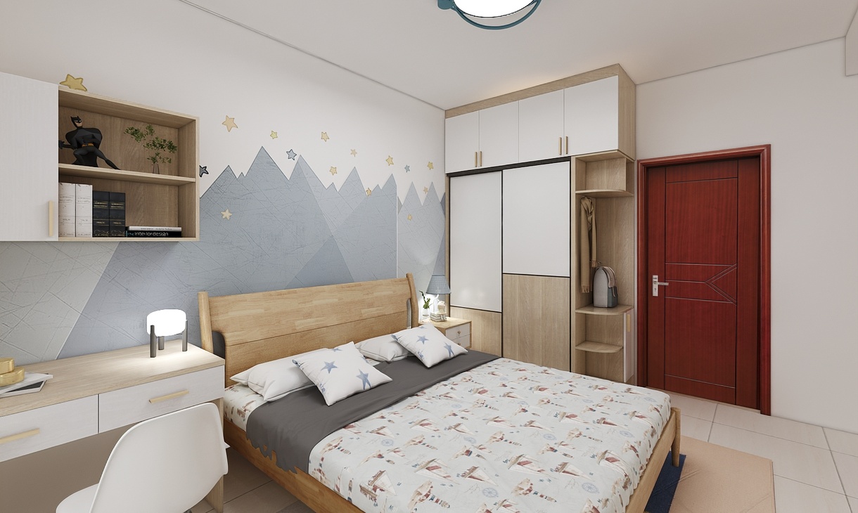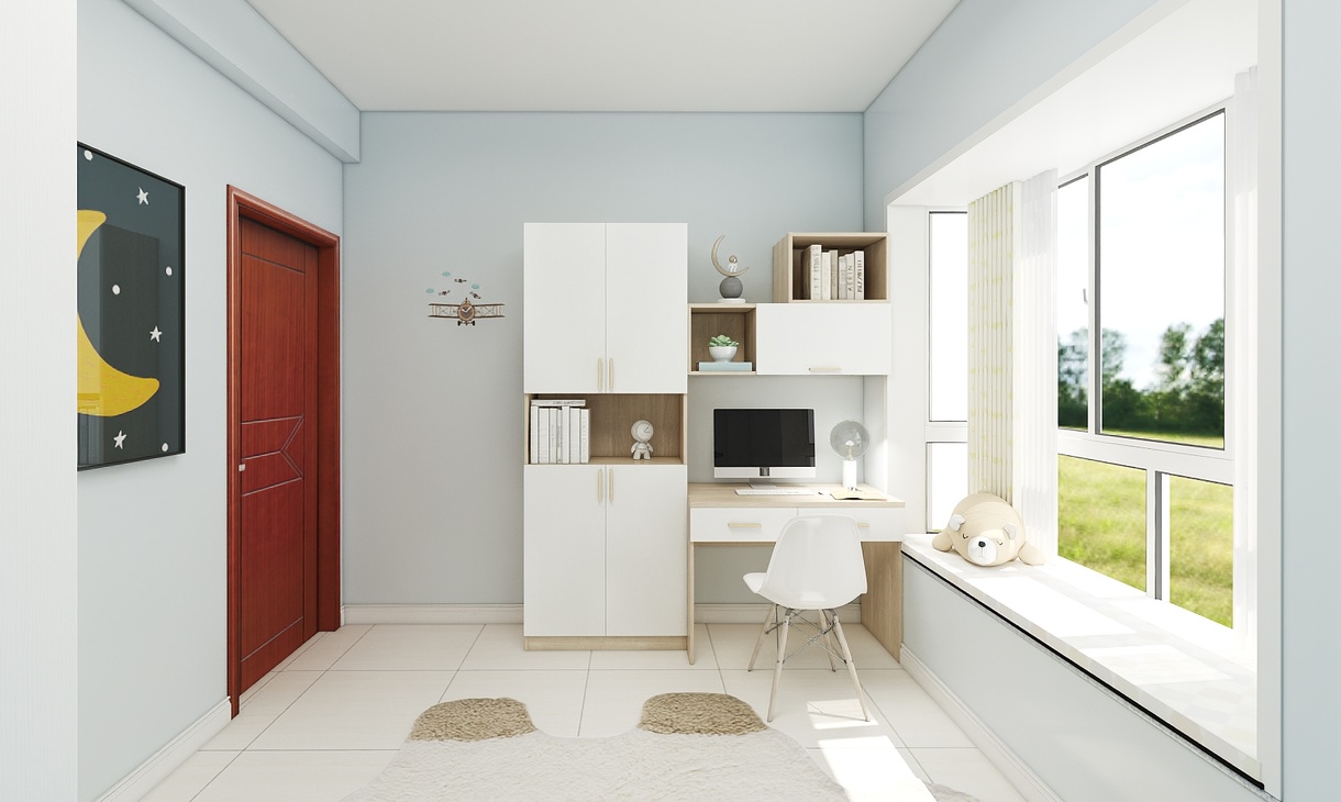 小男孩只有十歲,正是需要獨(dú)立空間的時候,需要自己的儲物間也需要屬于自己的學(xué)習(xí)基地,背景設(shè)計(jì)卡通,帶童趣