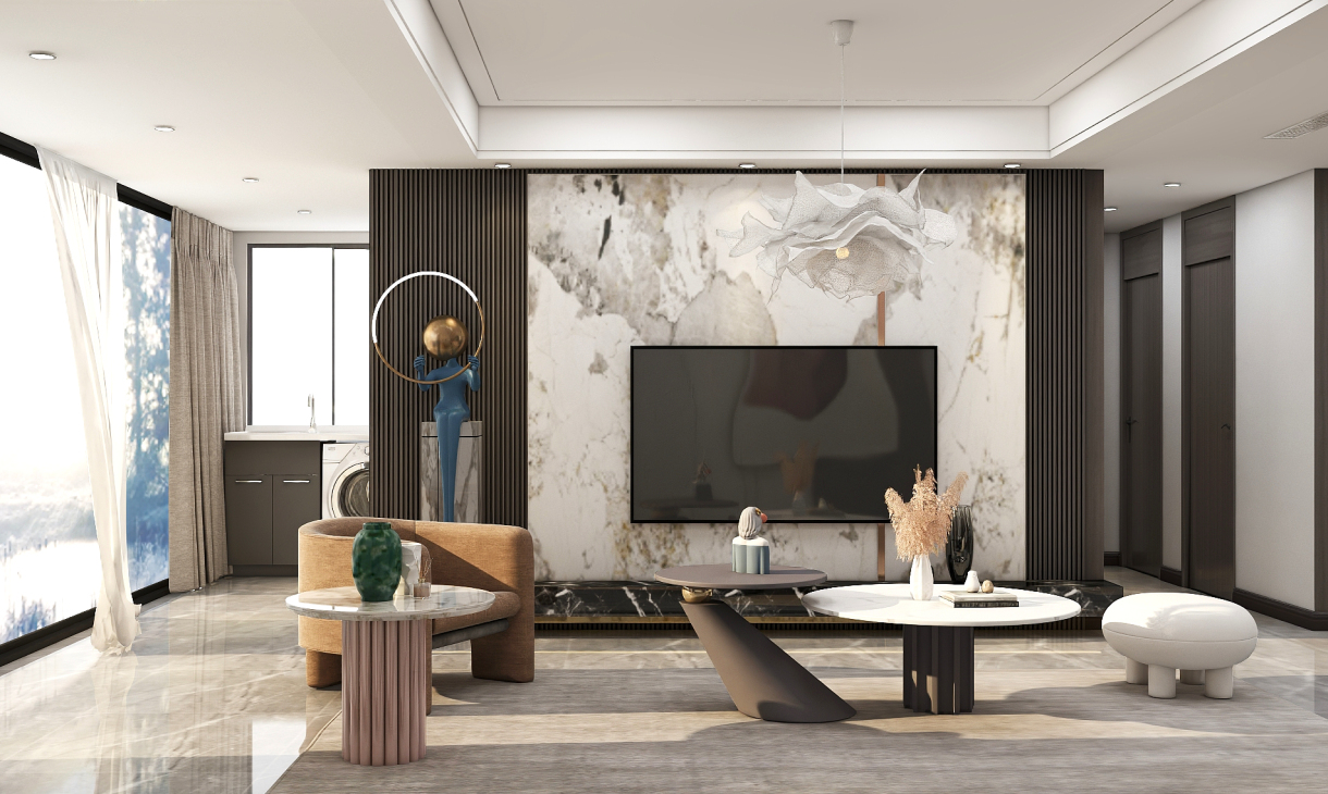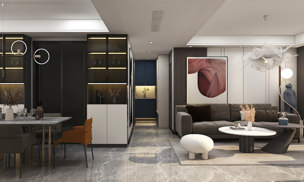 每個空間至少2張效果圖+1張全案全景圖展示,方案描述完整,所有空間需命名。