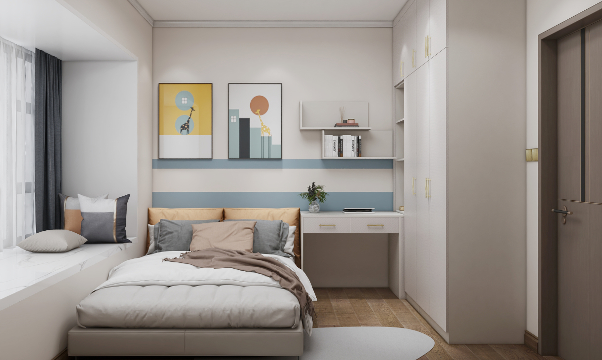 效果圖:全屋概覽效果圖、客廳效果圖、餐廳效果圖、廚房效果圖、兒童房效果圖、主臥效果圖
