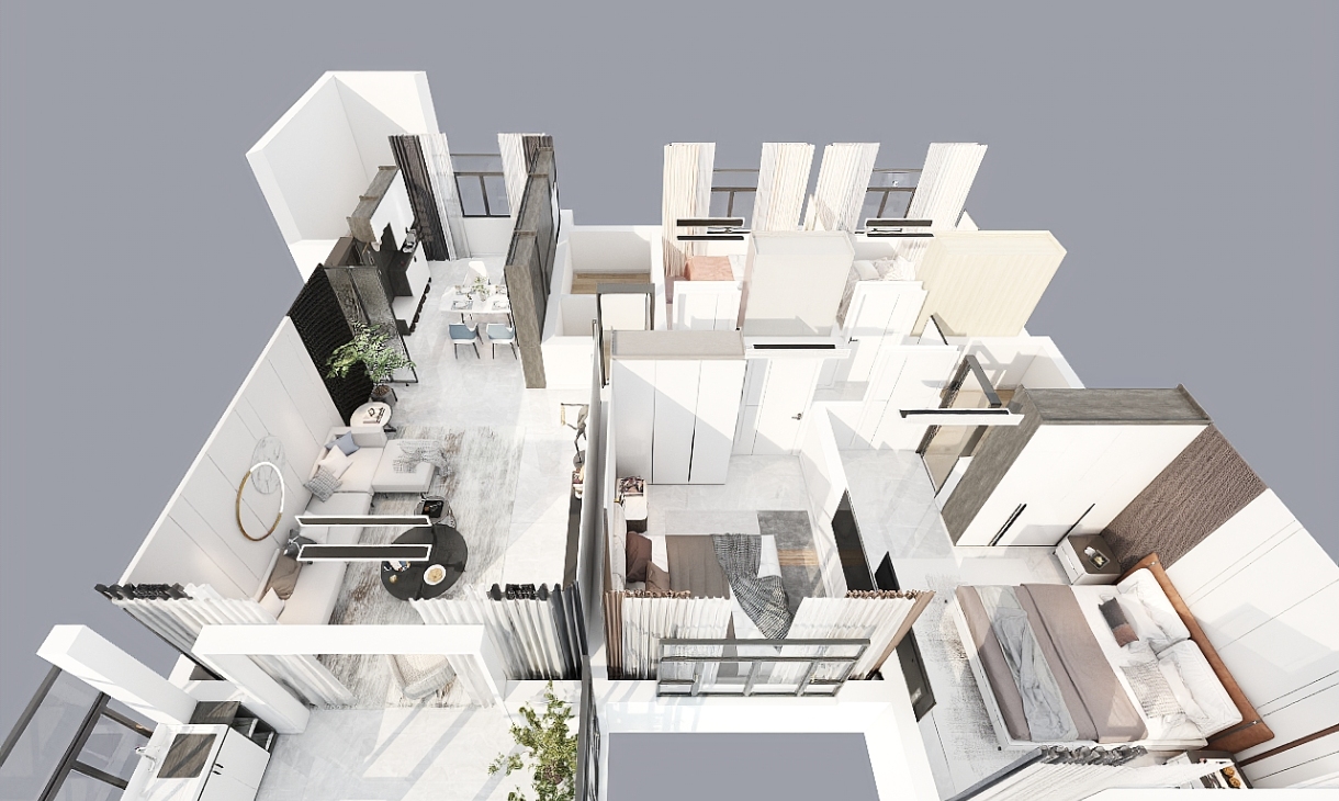 每個空間至少2張效果圖+1張全案全景圖展示,方案描述完整,所有空間需命名。
