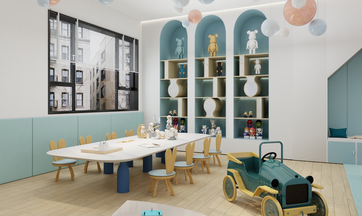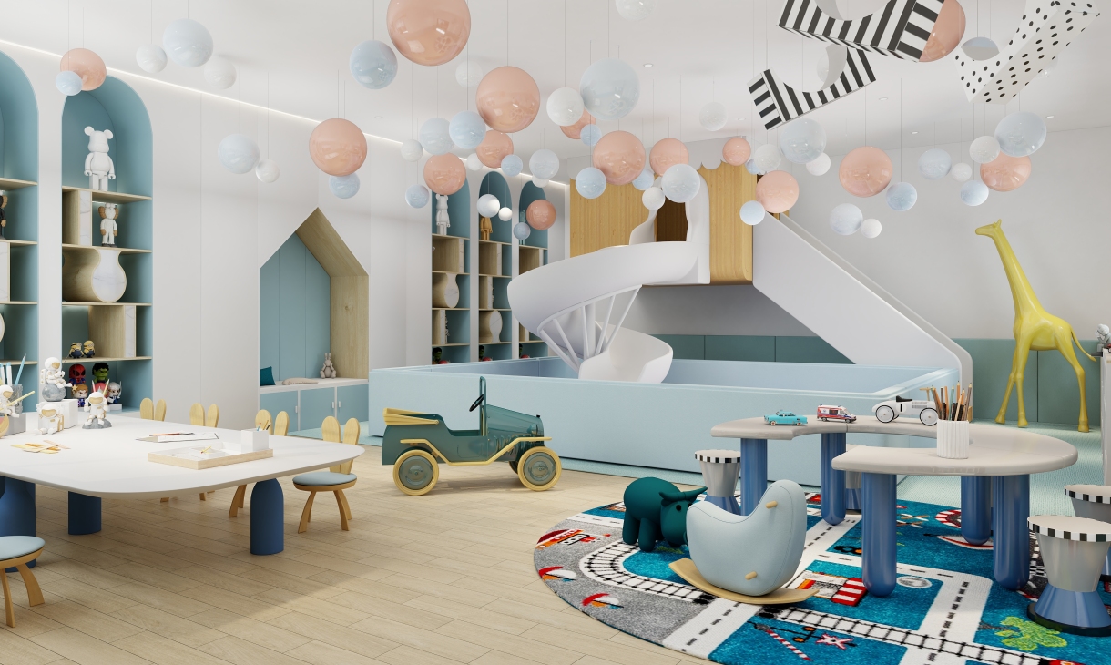 效果圖:全屋概覽效果圖、客廳效果圖、餐廳效果圖、廚房效果圖、兒童房效果圖、主臥效果圖