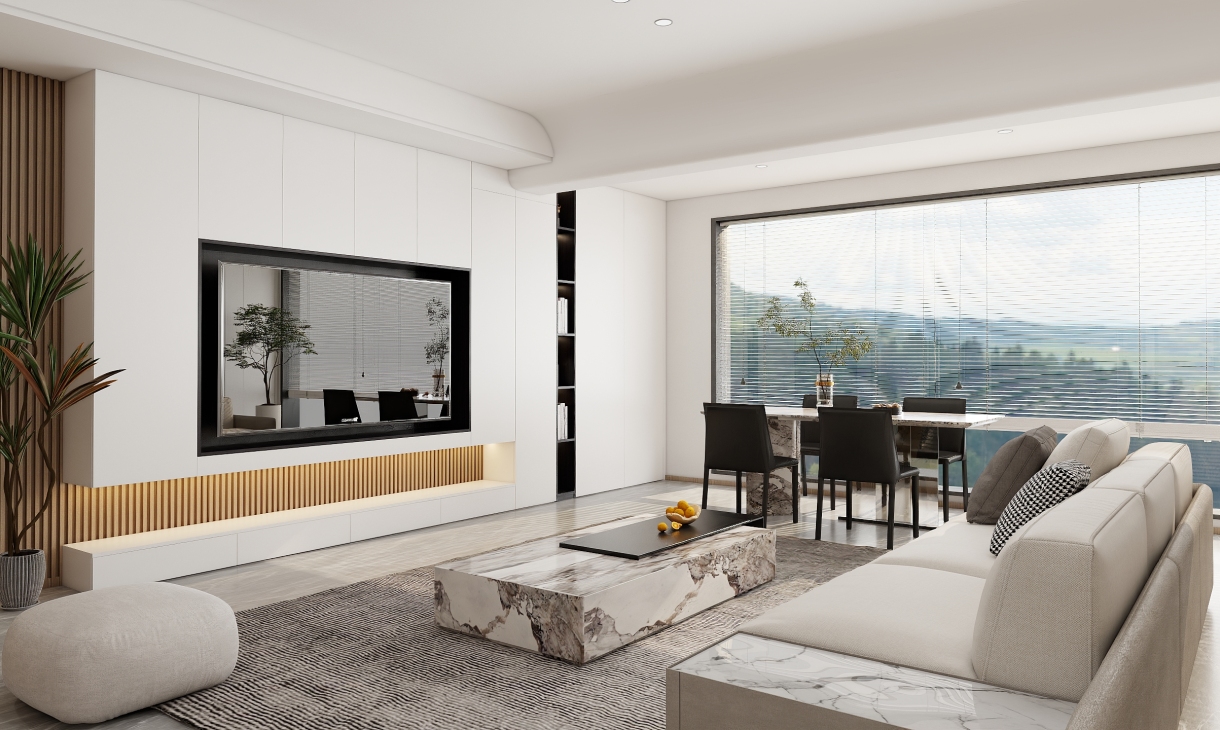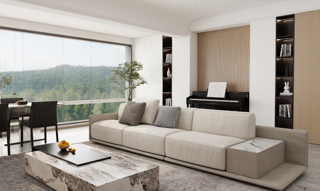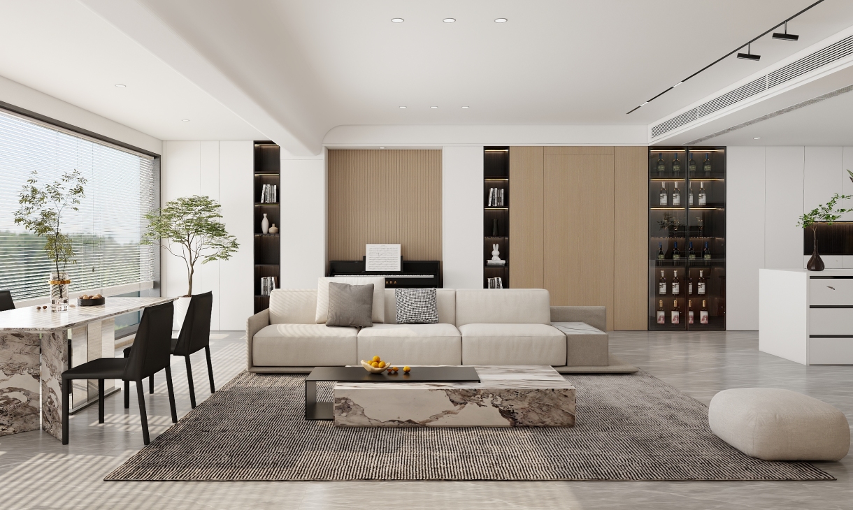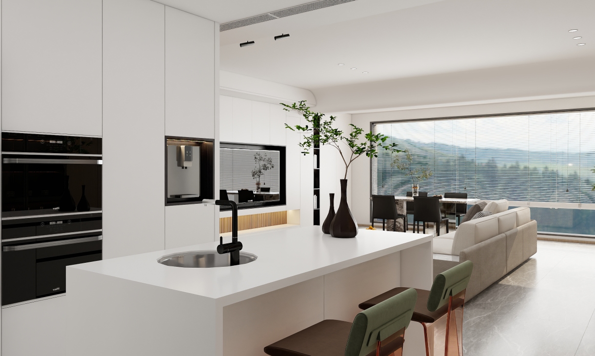 精致與簡(jiǎn)潔,是一種設(shè)計(jì)智慧。本案以此為根基,勾勒簡(jiǎn)潔的線條與體塊,增添豐富性、藝術(shù)性、宜居性,有效串聯(lián)起室外的動(dòng)人景致,發(fā)揮頂層復(fù)式的優(yōu)越性與詩(shī)意性,塑造親近自然同時(shí)又展現(xiàn)疏朗優(yōu)雅的空間格調(diào),仿若漫步云端。
