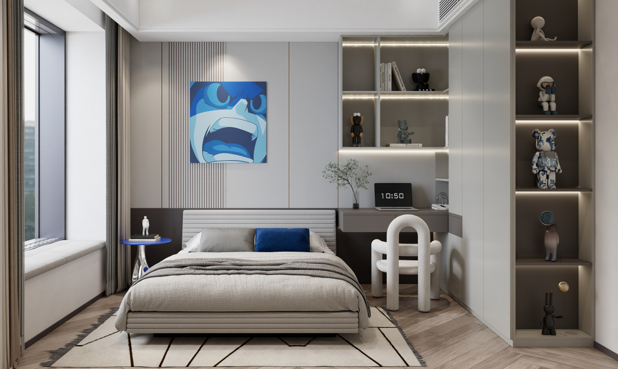 效果圖:全屋概覽效果圖、客廳效果圖、餐廳效果圖、廚房效果圖、兒童房效果圖、主臥效果圖