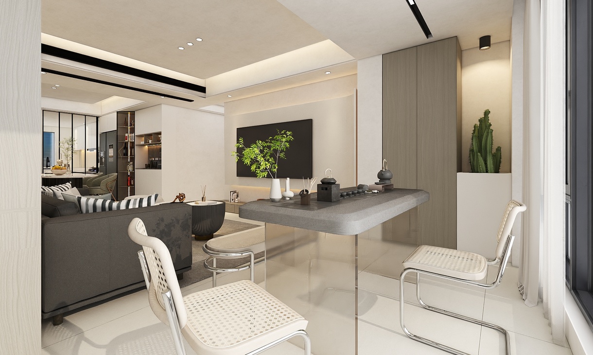 每個(gè)空間至少2張效果圖+1張全案全景圖展示,方案描述完整,所有空間需命名。