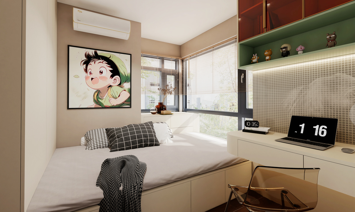 效果圖:全屋概覽效果圖、客廳效果圖、餐廳效果圖、廚房效果圖、兒童房效果圖、主臥效果圖