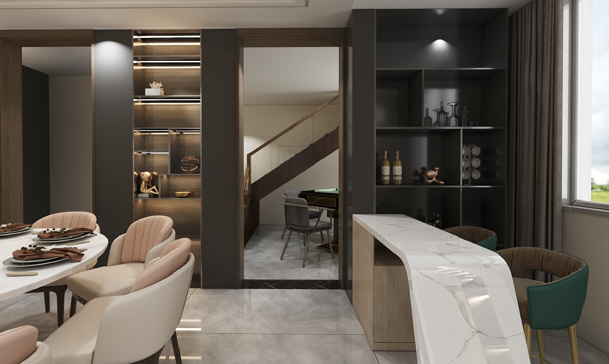 每個空間至少2張效果圖+1張全案全景圖展示,方案描述完整,所有空間需命名。