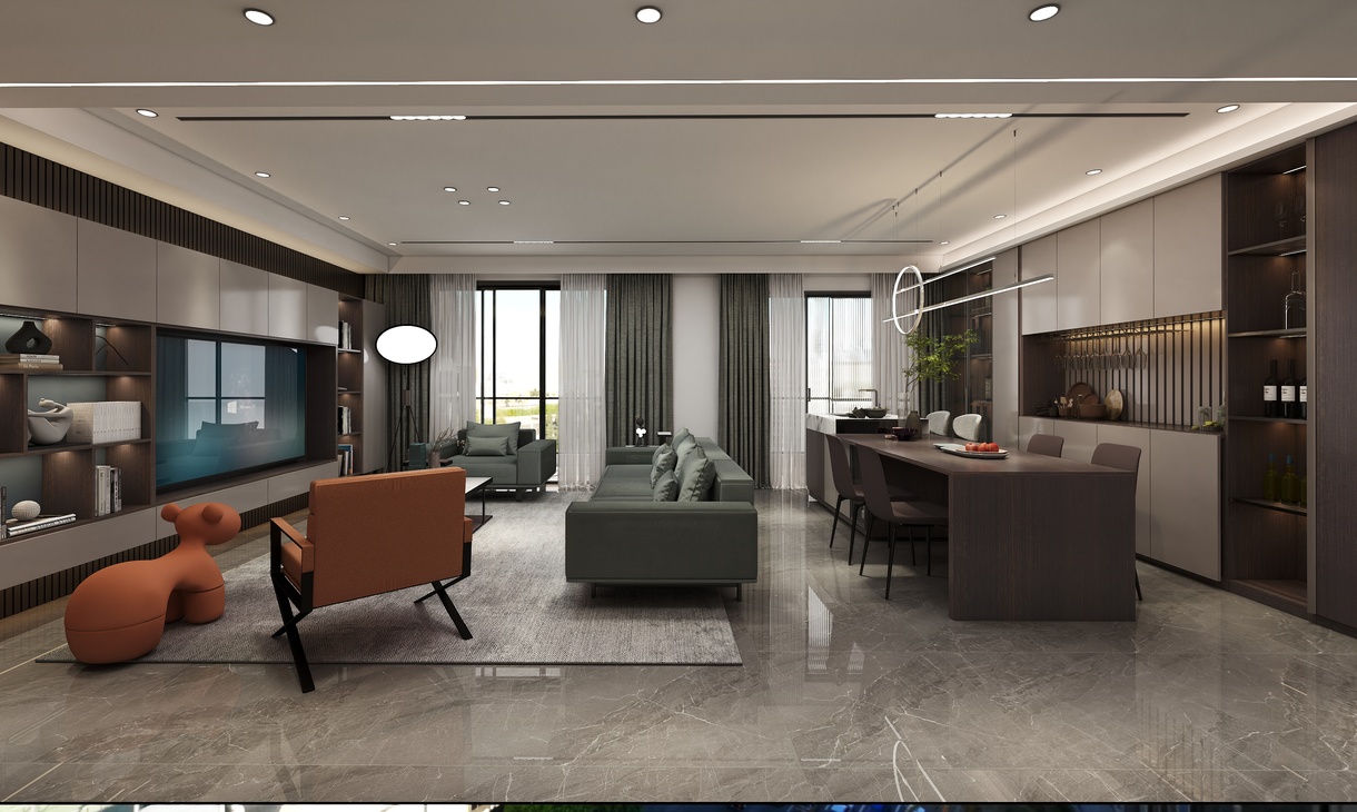 每個空間至少2張效果圖+1張全案全景圖展示,方案描述完整,所有空間需命名。