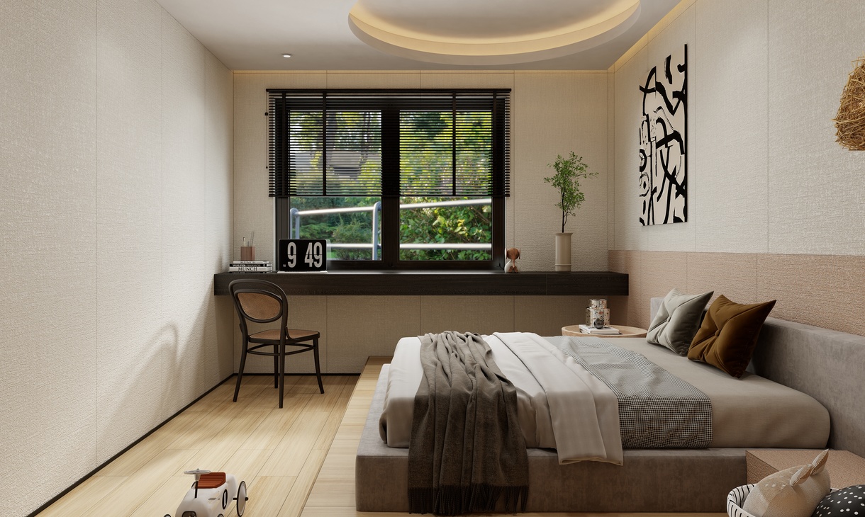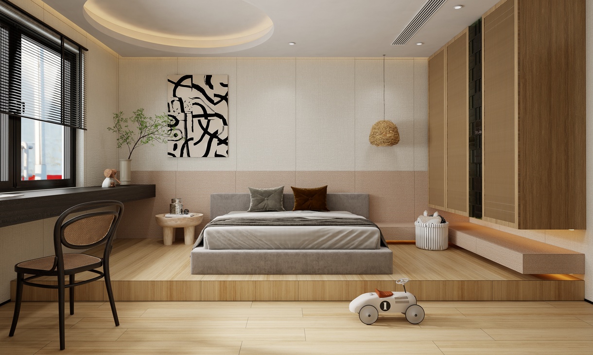 效果圖:全屋概覽效果圖、客廳效果圖、餐廳效果圖、廚房效果圖、兒童房效果圖、主臥效果圖