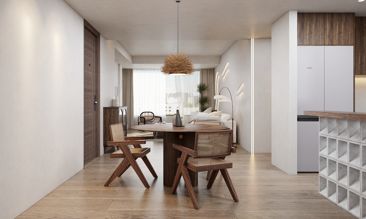 注重空間的運用,精于燈光營造室內氣氛,運用現(xiàn)代手法與傳統(tǒng)元素融合引入室內設計。